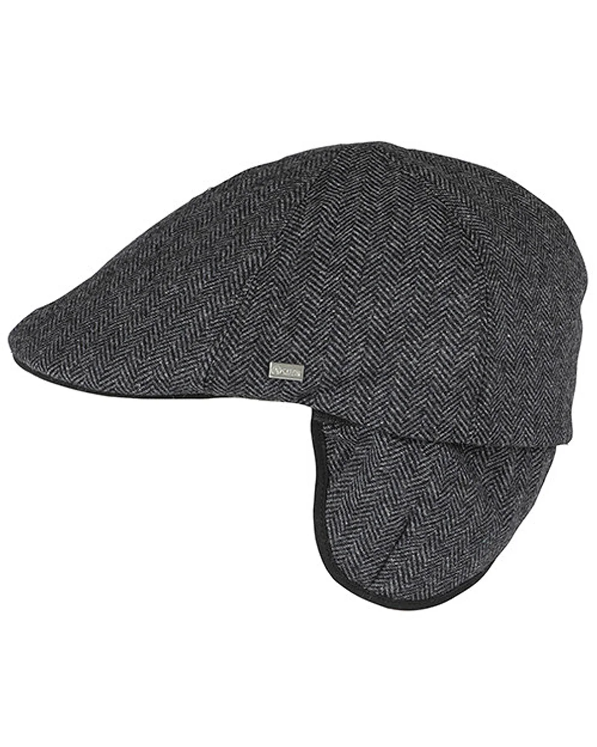 Salon Macon 56 Herringbone on villasekoitteesta valmistettu kalanruotokuvioinen flat cap tikkivuorilla ja sisään käännettävillä korväläpillä.